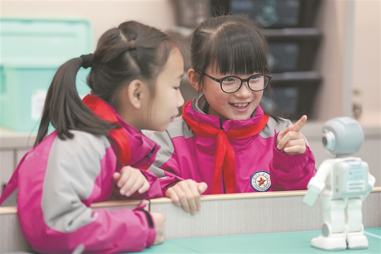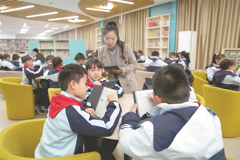 近年来,湖南湘江新区雷锋小学将智慧教育场景与基础学科、艺体学科、特色教学领域等深度融合,让人工智能化身教学助手、学习伙伴。学校共配备了50多间智能教室,创设20多类人工智能教育场景,使课堂更高效、学习更生动,以数字化转型助力基础教育高质量发展。