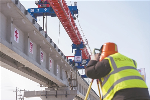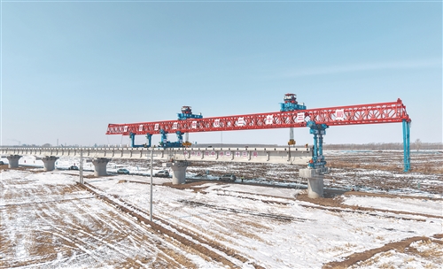 中欧班列“东通道”口岸段最长桥复工架梁