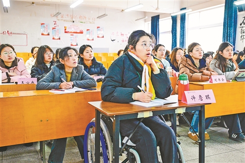 3月12日,芜湖市第三中学的课堂上,作为安徽师范大学心理学专业大三学生的许詹琪,迎来了自己的第一节实习课。这名轮椅上的姑娘,刚获评2025年度安徽省“最美大学生”,以准教师的身份“走上”讲台,向学生传递着坚韧的生命力量。