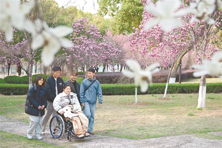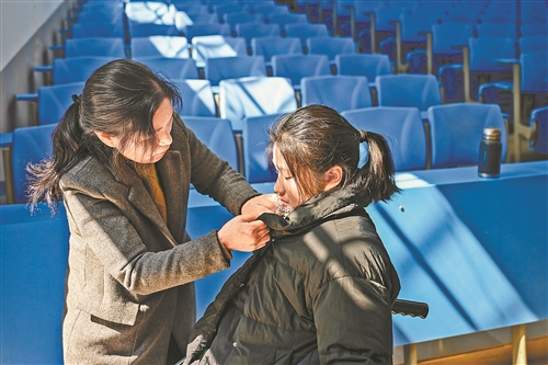得知许詹琪的特殊情况后,学校第一时间把她调整到一楼宿舍,修建无障碍坡道;老师悉心关照,同学们主动轮流陪伴照料。