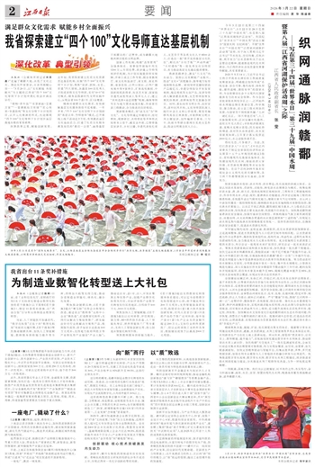 本报讯 (全媒体首席记者宋思嘉)“走遍了赣鄱大地,点亮了文化之光。理论化作家常话,乡亲笑颜暖心房……”3月20日,以“文化赋能 共促振兴”为主题的江西省“四个100”文化导师下乡计划中期汇报会在南昌举行。