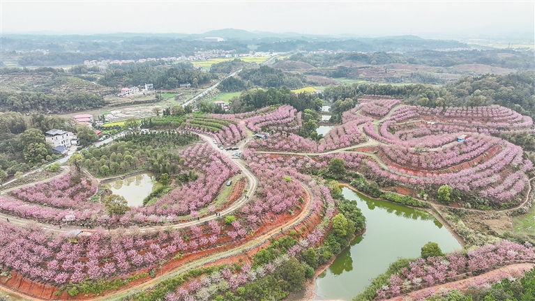 近年来,芦溪县因地制宜发展林下经济、花木培育、特色养殖等,让广大群众在乡村振兴中有更多获得感、幸福感。图为3月21日,芦溪县源南乡章家陂村横塘花木基地,万株樱花竞相绽放,为乡村振兴注入持久活力。 特约通讯员 李桂东摄