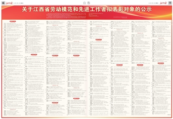 关于江西省劳动模范和先进工作者拟表彰对象的公示