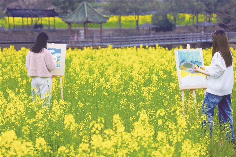 日前,南昌市湾里管理局太平镇狮子峰山脚500亩油菜花如期绽放,层层叠叠的花海随风起伏,吸引众多市民前来踏春赏景。据了解,这片油菜花自3月初陆续绽放,花期长达两个半月,预计吸引游客20万人次。 近年来,太平镇依托得天独厚的生态资源,大力发展观赏型油菜花产业,以花为媒、以旅兴农,将春日美景转化为发展优势,实现了生态美、产业兴、百姓富的良性循环。高心宇摄