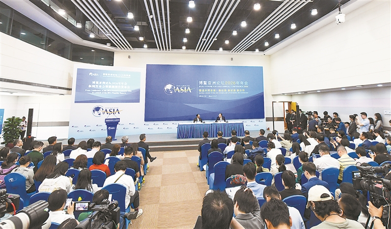 这是3月24日在海南博鳌拍摄的博鳌亚洲论坛2026年年会新闻发布会暨旗舰报告发布会现场。3月24日,博鳌亚洲论坛2026年年会新闻发布会暨旗舰报告发布会在海南博鳌举行。本次年会主题为“塑造共同未来:新形势、新机遇、新合作”。据统计,共有来自60多个国家和地区的约2000名代表,以及来自约150家媒体的1100余名记者参加年会。 新华社记者 杨冠宇摄