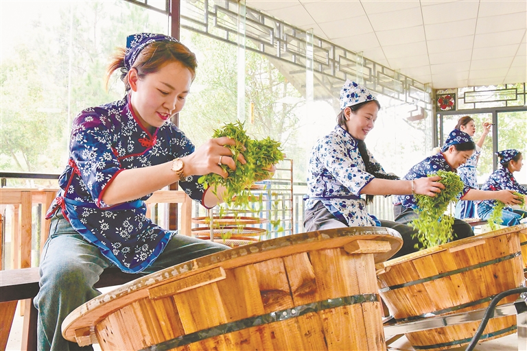3月23日,在宁都县小布镇小布茗生态茶园,茶农正在制作春茶,供应市场。本报全媒体记者 杨文斌摄