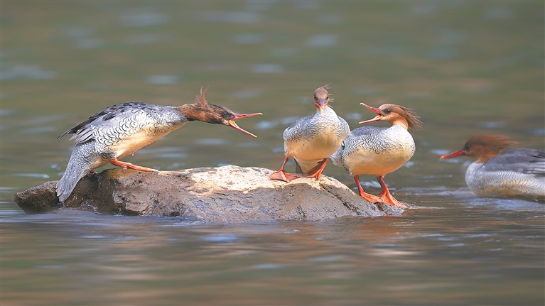 生态环境好了,越来越多的珍稀动物将这里当作栖息乐园。被誉为“鸟中大熊猫”的中华秋沙鸭对水质、食物和栖息环境要求极为苛刻,是衡量湿地生态质量的重要指示物种,已连续19年在此越冬,朱鹮在丹霞群峰间成功野化放归,这些自然界的“质检员”,为龙虎山的Ⅱ类以上水质、优质生态签署最权威的“合格证”。如今的龙虎山,山更绿、水更清、生命更丰盈,生态不仅是风景的底色,更是文旅发展的坚实根基。