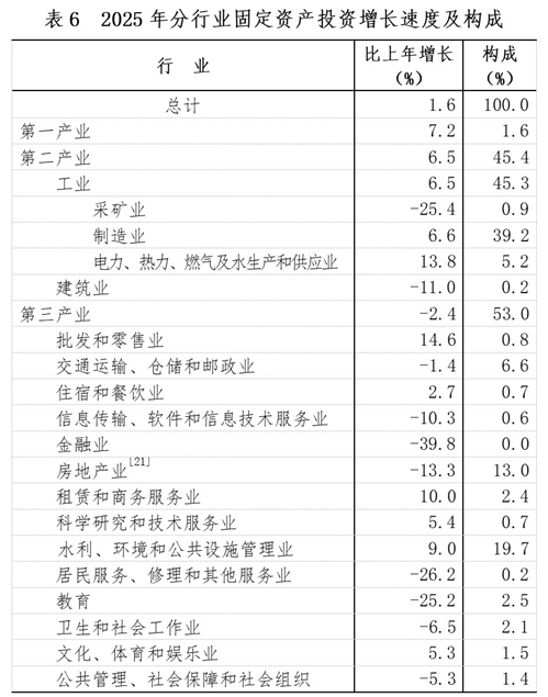 [18]由于投资统计制度方法改革、统计执法检查等因素,2025年固定资产投资相关指标增速按可比口径计算。