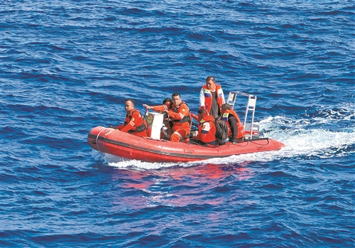 3月31日,印度尼西亚搜救部门说,该国北马鲁古省附近海域发生船只沉没事件后,船上的21名船员已全部获救。图为救援人员转移获救船员。新华社发(印尼国家搜救局供图)