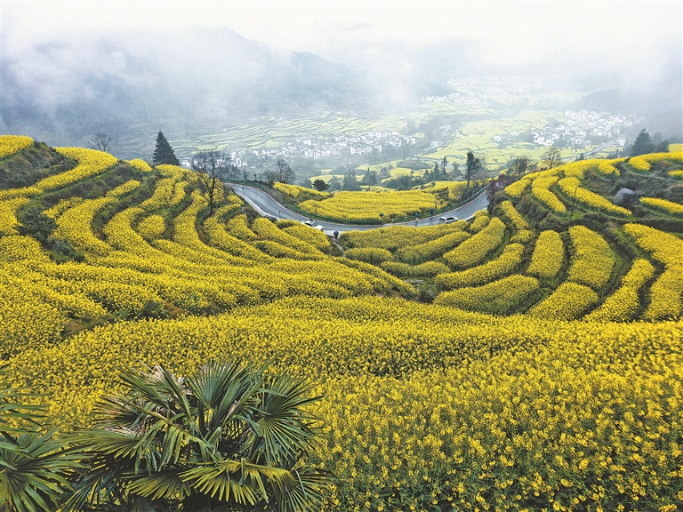 春到婺源,13万亩油菜花绽放,漫山遍野的金黄将白墙黛瓦的徽州古村包裹,小桥流水间飘着烟火气,仿佛一幅幅诗意满满的水墨画,吸引着天南海北的游客前来踏青。