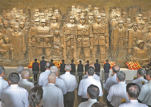 4月3日,社会各界代表在中国人民抗日战争纪念馆向抗战英烈献花。