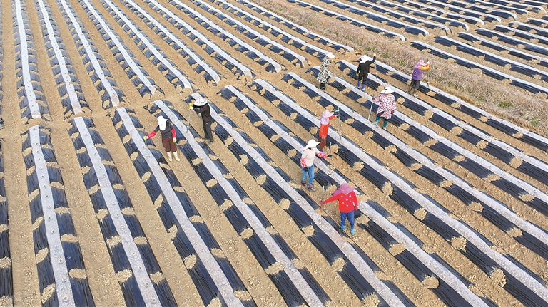 | 3月3日,永丰县石马镇棠阁村,农民正在田间整地覆膜,准备移栽农作物秧苗。通讯员 刘浩军摄 |