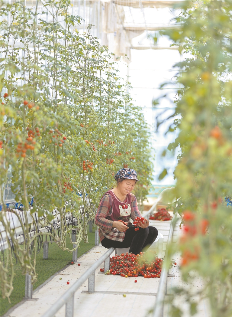4月5日,瑞昌市高标准设施蔬菜示范中心内,工人正在采摘西红柿。近年来,瑞昌市大力发展高品质设施农业,实现全季节持续生产,既保障了市场供应,又促进了农民增收。特约通讯员 魏东升摄
