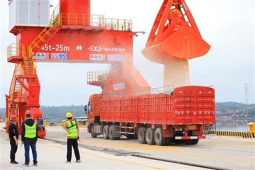 4月7日,万安县下村综合货运码头正在装卸货物。近年来,万安县开发利用赣江航道发展内河航运,打通内陆地区出海通道,助力内陆经济发展。