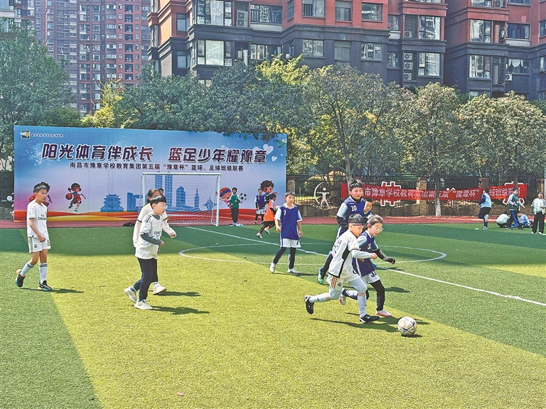 “好球!”“漂亮!”4月1日上午,豫章学校教育集团紫金校区操场上,第五届“豫章杯”足球联赛激战正酣,当日正是小组赛收官之日。“踢足球特别开心,既能锻炼身体,还能和同学合作!”五年级学生熊闻晨抹着额头的汗水,脸上满是兴奋。