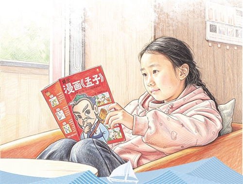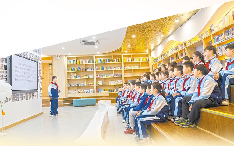 每周阅读课上的分享会,是肖梓儒期待的课堂时光。“把自己读到的故事与同学们分享,让我提升了阅读的兴趣。”别看他年纪小,说话却不紧不慢、颇有条理。“平时在家里写完作业后,我也会读书,先后读了《资治通鉴》、四大名著,不仅收获了很多知识,还感受到了阅读的乐趣。”
