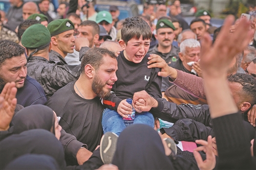 4月11日,在黎巴嫩西顿市,人们参加遭以军空袭丧生的安全人员的葬礼。 黎巴嫩卫生部4月11日表示,自3月2日黎以战火重燃以来,以色列对黎巴嫩发动的袭击已造成2020人死亡、6436人受伤。 新华社/美联