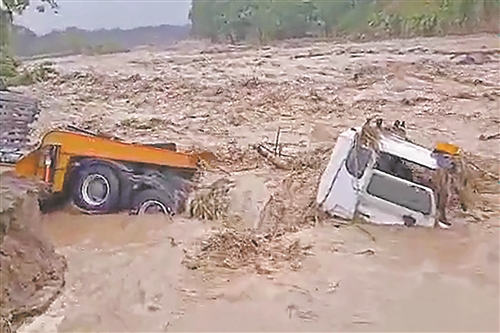 这张4月12日的视频截图显示,一辆卡车在巴布亚新几内亚布干维尔自治区北部被卷入洪水。 据当地媒体13日报道,热带气旋“迈拉”导致巴布亚新几内亚至少11人死亡。据巴新国家广播公司报道,受灾最严重的地区是距离巴新首都莫尔兹比港以东950公里的布干维尔自治区。11名遇难者中有8人死于泥石流导致的房屋倒塌。新华社/法新
