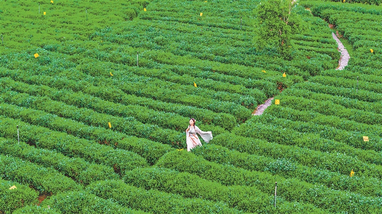 4月11日,春风送暖,茶香满园。遂川县汤湖镇万亩茶园迎来春茶采摘季,身着汉服的采茶姑娘穿梭茶垄,在青翠茶海中绘就灵动春日图景。李小明摄