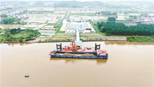 近年来,峡江县依托赣江黄金水道优势,发展内河航运经济,助力县域经济发展。图为4月12日,船舶停靠在巴邱镇王家货运码头装载货物。