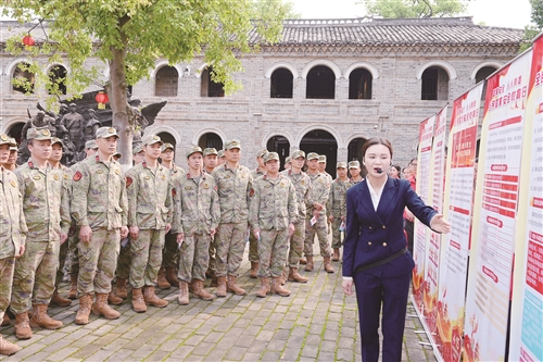 另一边,在江西军区旧址,一场主题鲜明的宣教活动同步开展。该旧址作为“兴国模范师”誓师出征地,先后获评全国爱国主义教育示范基地、江西省首批国防教育基地,承载着厚重的革命历史。活动中,讲解员带领民兵参观旧址,生动讲述苏区时期“兴国模范师”宣誓出征、奋勇抗敌的英雄事迹。现场还进行了政治、军事、网络等国家安全重点领域知识宣讲,结合民兵岗位职责解读维护国家安全的方法与意义,让维护国家安全成为每个人的自觉行动。