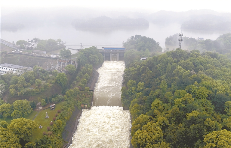 4月13日,新余市江口水库开启单孔闸门泄洪。连日来,新余市持续出现降雨天气,江口水库水位快速上涨,当地水利部门适时开闸泄洪,科学调控水位,筑牢防汛安全网。 本报全媒体记者 邹宇波摄