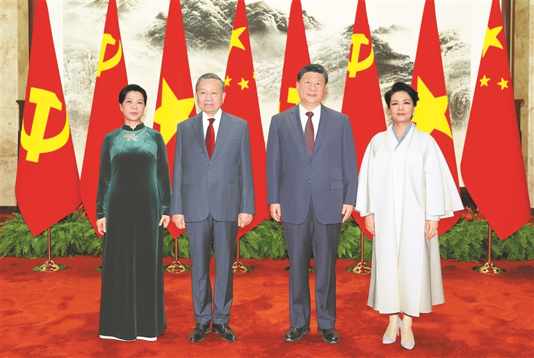 苏林表示,这是我当选越南国家主席后首次出访,也正值习近平总书记、国家主席去年对越进行历史性访问一周年,充分反映了总书记同志所说的“邻里越走越亲”。越方感谢中国共产党、政府和人民对越共十四大提供的重要政治支持,愿始终同中方赓续传统友谊,推动两国全面战略合作伙伴关系和具有战略意义的命运共同体不断发展。越方祝贺中国胜利完成“十四五”规划并取得历史性成就,相信中方将顺利实施“十五五”规划,不断推进高质量发展和社会主义现代化建设,如期实现第二个百年奋斗目标,并成为世界和平发展的支柱力量和首要动力。