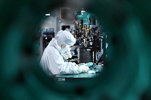 一排排全自动的固晶机、焊线机等机器有条不紊地作业,几名身着无尘衣的工作人员正在调试设备,每一道工序都由计算机控制的智能化设备操控,一个工人就能操作管理几十台机器……这是笔者3月30日在位于南昌高新区的江西兆驰晶显有限公司看到的一幕。有趣的是,企业的原材料供应商与其仅一路之隔,且超半数原材料实现本地配套,成本得以有效控制。得益于此,这家企业在落户不到三年的时间里,生产线从100条迅猛扩张至1500条,成为全球最大的COB面板制造商。