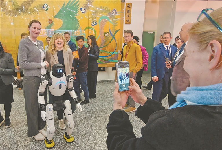 4月13日,在奥地利维也纳国际中心,人们在以“太和充满——在维也纳联合国遇见故宫”为主题的2026年维也纳联合国中文日系列活动上与机器人合影。 今年4月20日是中国传统二十四节气中的“谷雨”,也是联合国中文日。值此美好时节,联合国多个机构近日举办了丰富多彩的庆祝活动。 新华社发 (王 宙摄)