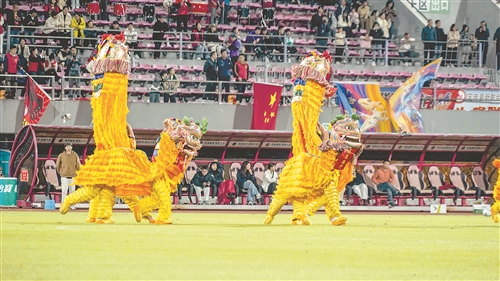 非遗不仅走进了景区,也走进了赛场。定南瑞狮、会昌畲族摆字龙等20多个非遗代表性项目在赣超中场激情舞动,绿茵场上的瑞狮腾跃,让球迷们大呼过瘾。非遗与体育的跨界融合,让古老技艺有了“年轻粉丝”。
