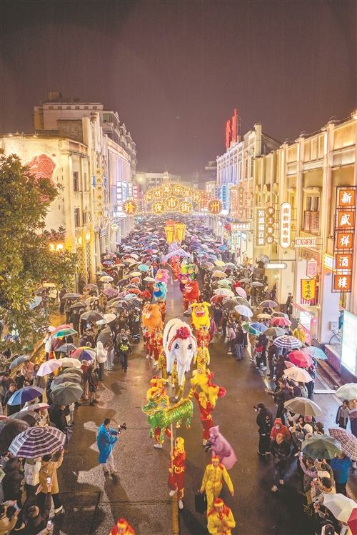 3月3日晚,正月十五,“我们的节日·元宵——福马闹春灯耀赣州”赣州市2026年元宵节客家民俗巡游活动在江南宋城历史文化旅游区精彩上演。
