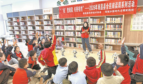4月14日,南昌县科学技术协会联合塔城乡开展“‘机’智阅读,书香有约”主题活动,让读者在互动体验中与人工智能机器人亲密接触,感受科技为阅读带来的便捷与惊喜,推动科技与书香深度融合。 本报全媒体记者 侯艺松摄