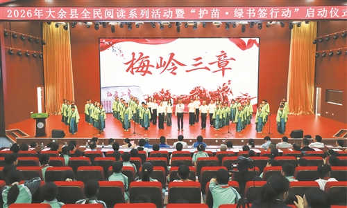4月20日,2026年大余县全民阅读系列活动暨“护苗·绿书签行动”启动仪式举行。在世界读书日来临之际,大余县积极开展谷雨诗会、红色经典诵读等群众喜闻乐见的全民阅读推广活动,丰富群众精神文化生活,营造“爱读书、读好书、善读书”的良好氛围,持续擦亮“书香南安 悦读名城”文化品牌。 朱春伟摄