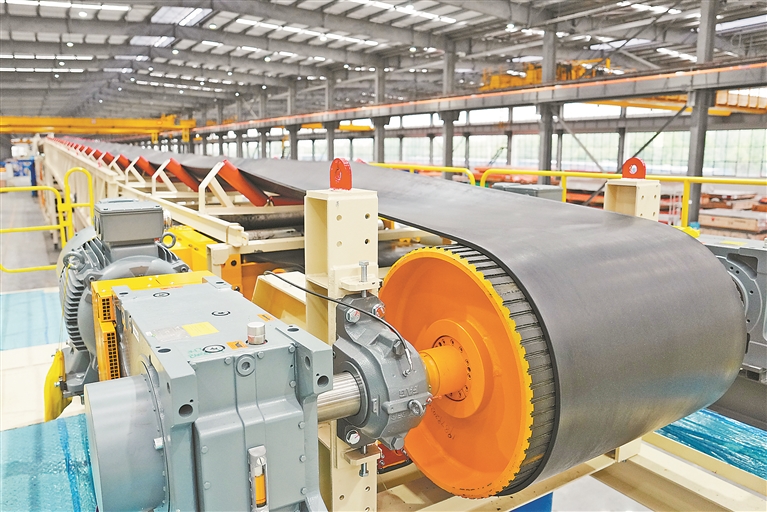 这是4月21日在铁建重工长沙第三产业园拍摄的连续皮带机。当日,由铁建重工自主研制的大型隧道连续皮带机在长沙完成安装调试,即将发运西班牙进行交付。这是国产连续皮带机首次进入西班牙市场。据了解,该套连续皮带机全长4500米,将服务于西班牙巴塞罗那地铁8号线扩建工程。 新华社记者 陈振海摄
