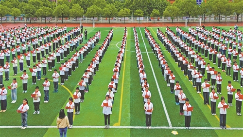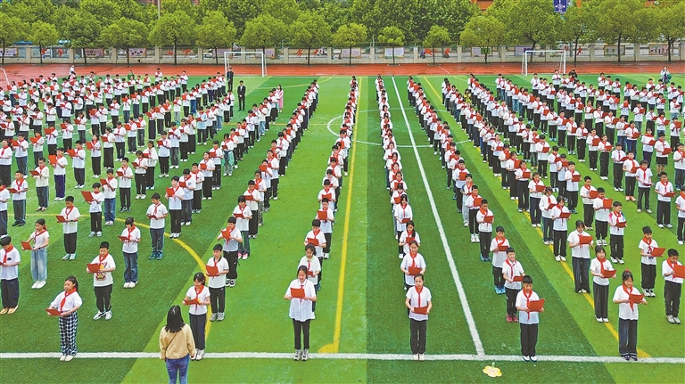 4月23日,会昌县第四小学开展中华经典诵读活动。全校600余名学生齐声诵读《少年中国说》等经典篇目,营造浓厚的书香氛围。通讯员 华辛明摄
