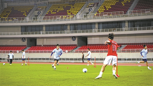 夜色渐深,全民健身体育中心的灯光依然明亮。队员们在球场奔跑、拼抢、磨合战术,汗水洒满绿茵。这支富有朝气的队伍正以最佳状态、最强斗志、最足信心,迎接新赛季。