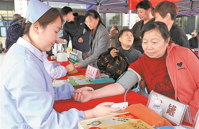 4月23日,上饶市信州区举办2026年医保基金监管集中宣传月活动,将健康义诊与医保宣传深度融合,吸引了众多市民排队体验。本报全媒体记者 刘宇琦摄