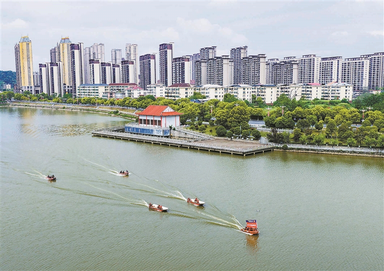 4月24日,都昌县消防救援大队联合蓝天救援队举行抗洪抢险演练,提升防汛应急处置和水上抢险救灾能力。通讯员 傅建斌摄